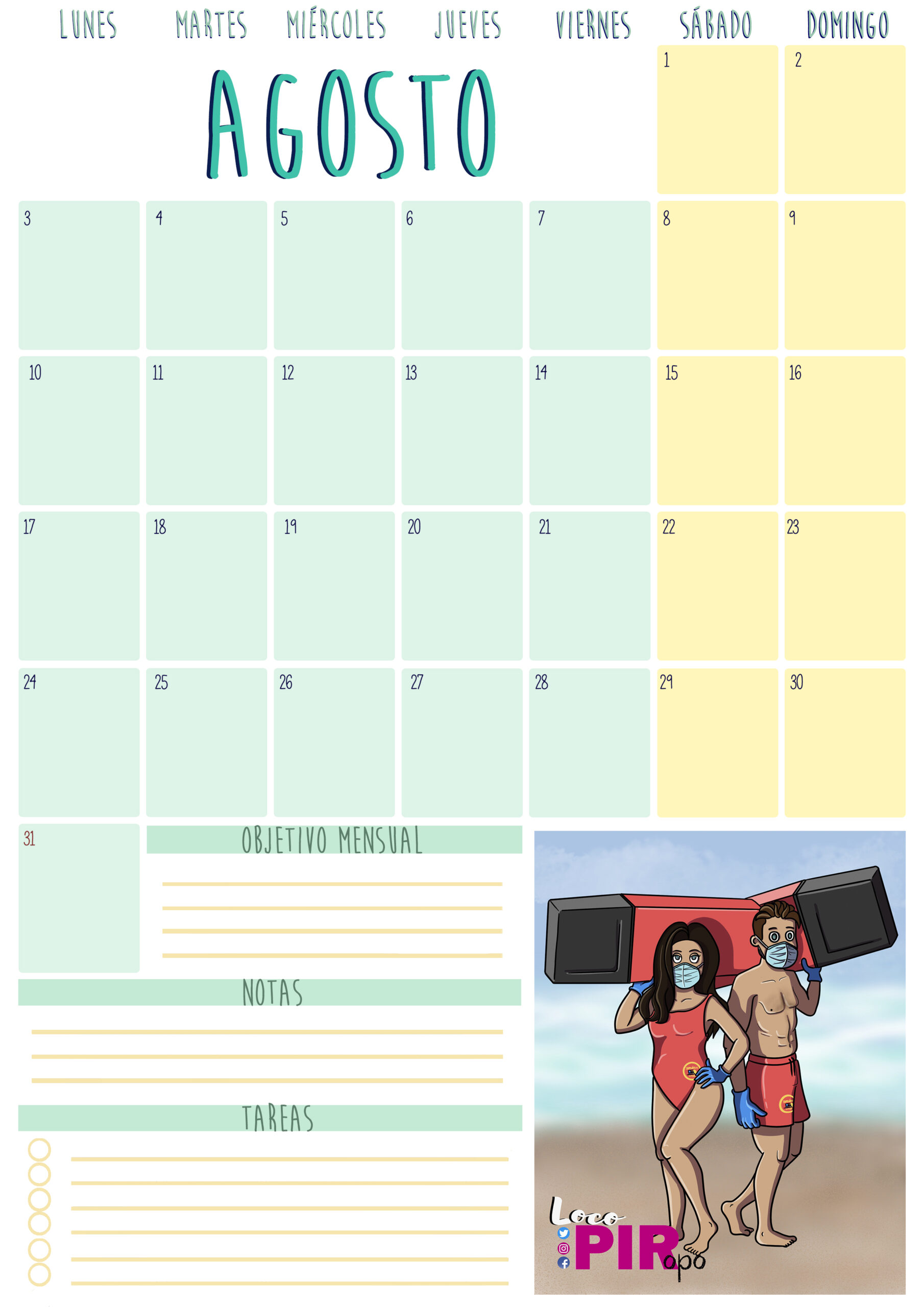 A continuación os dejo con el planning de agosto en sus dos formatos.