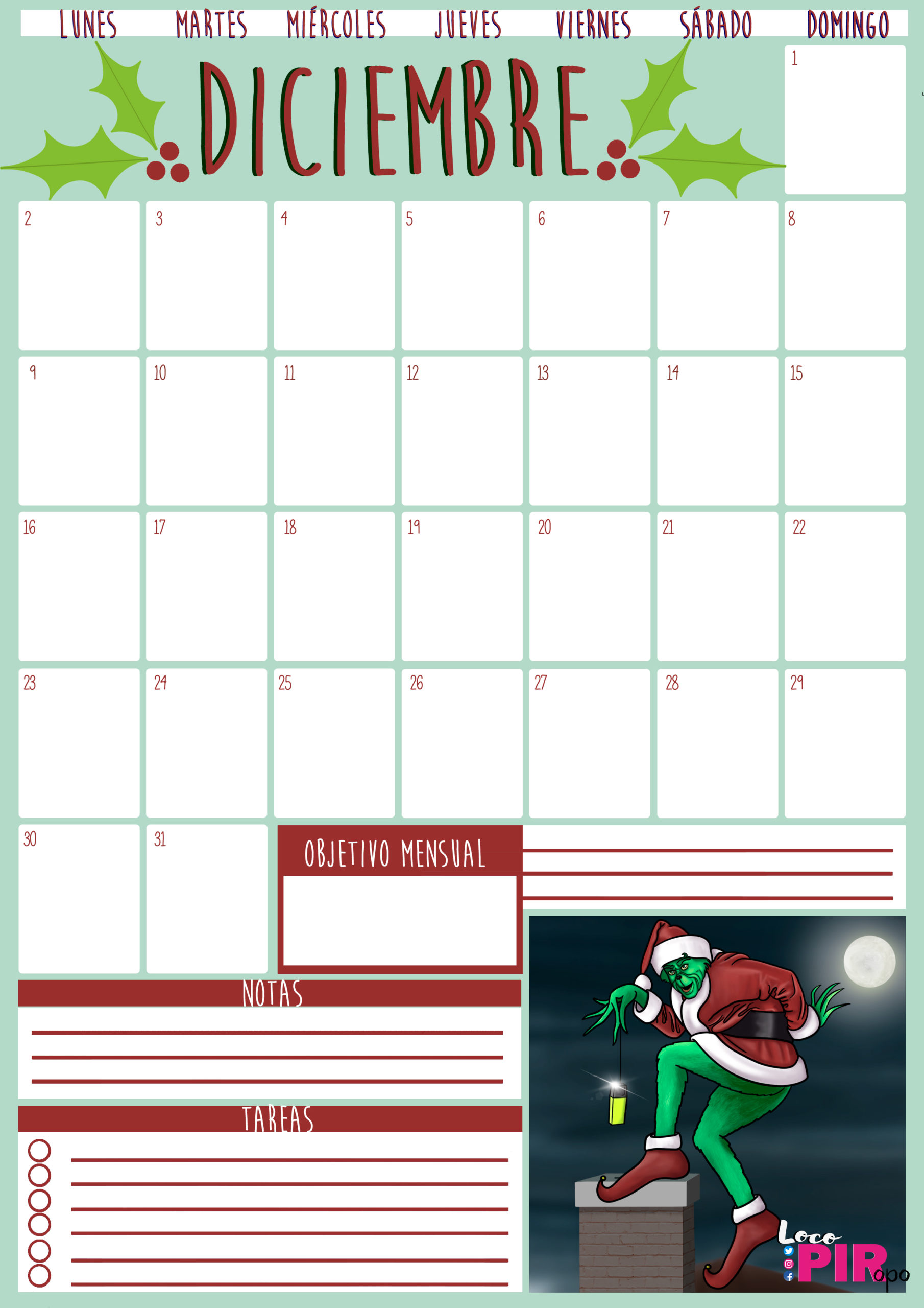 En esta ocasión el planning de diciembre solo viene en formato vertical. Sí, lo sé, es un fastidio para aquellos que os gustaba el horizontal. Pero, no he tenido tiempo para hacer el otro y si lo hacía, no lo ibais a tener a tiempo. Así que… ¡Mil perdones!