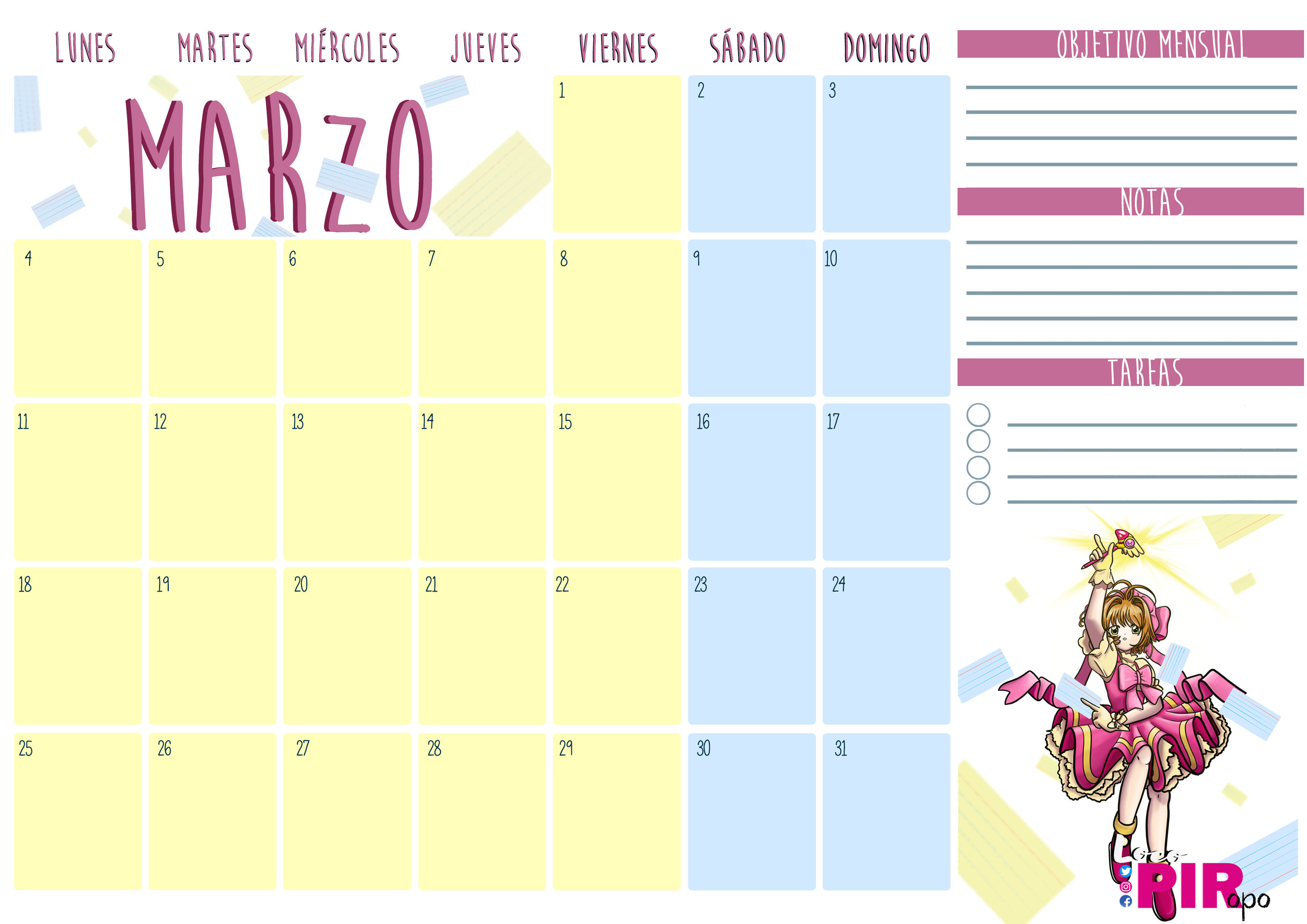 Ojalá podáis cumplir todos los objetivos para el mes de marzo. Y si subís alguna foto con el planning de marzo, que no se os olvide etiquetarme para poder verla (Instagram, Twitter y Facebook. ) 😍😍