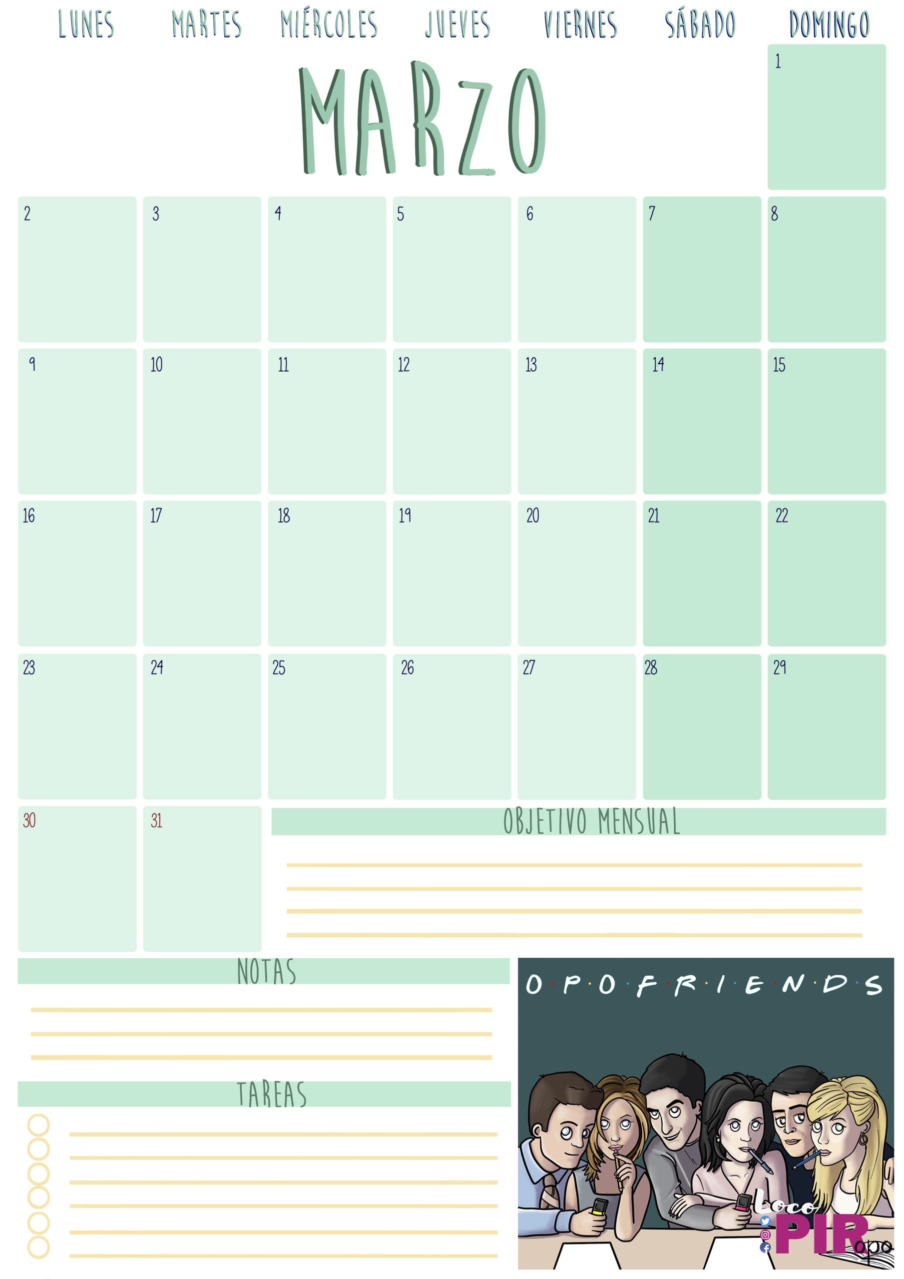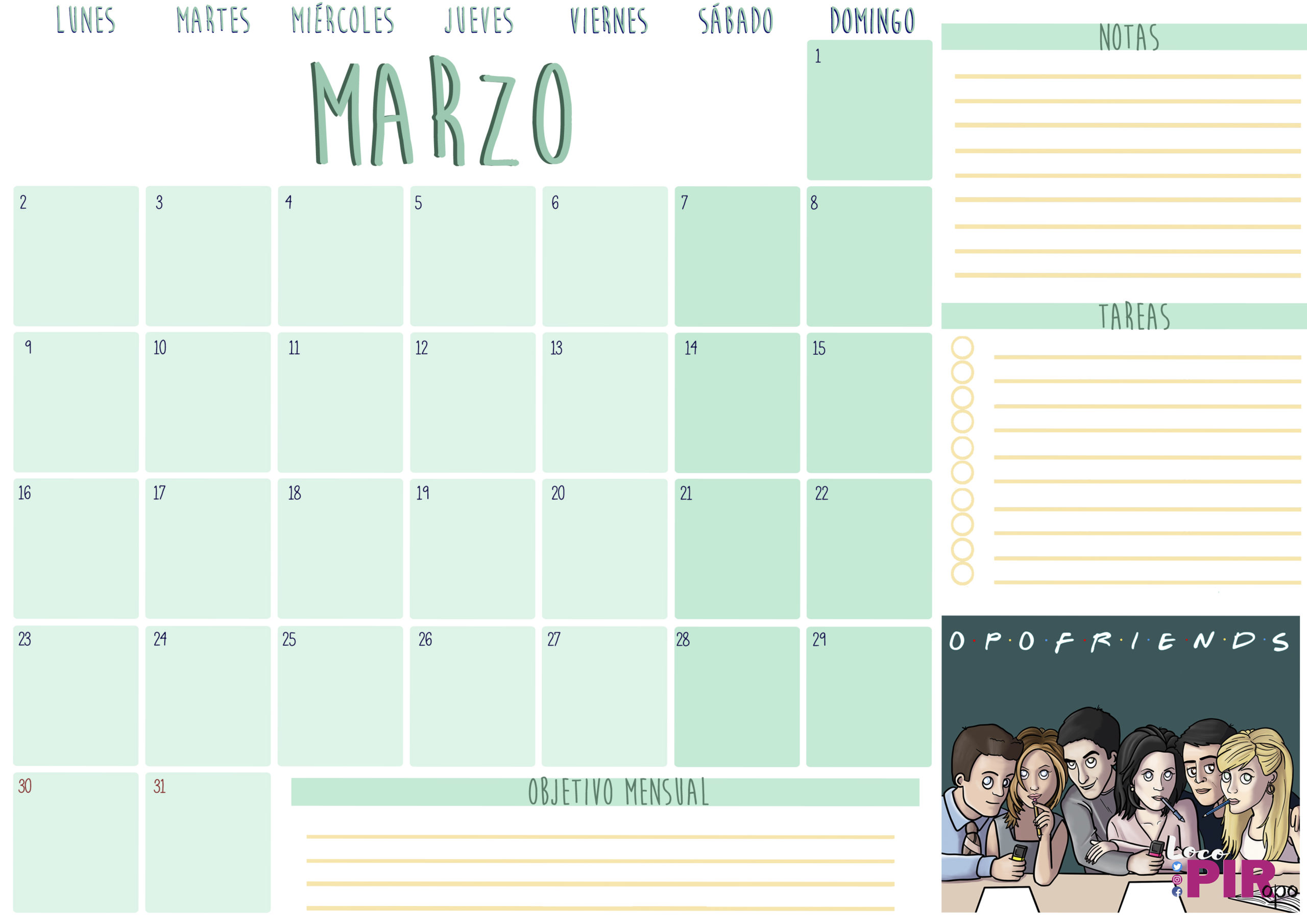 A continuación, podréis descargar el planning de marzo en sus diferentes versiones: