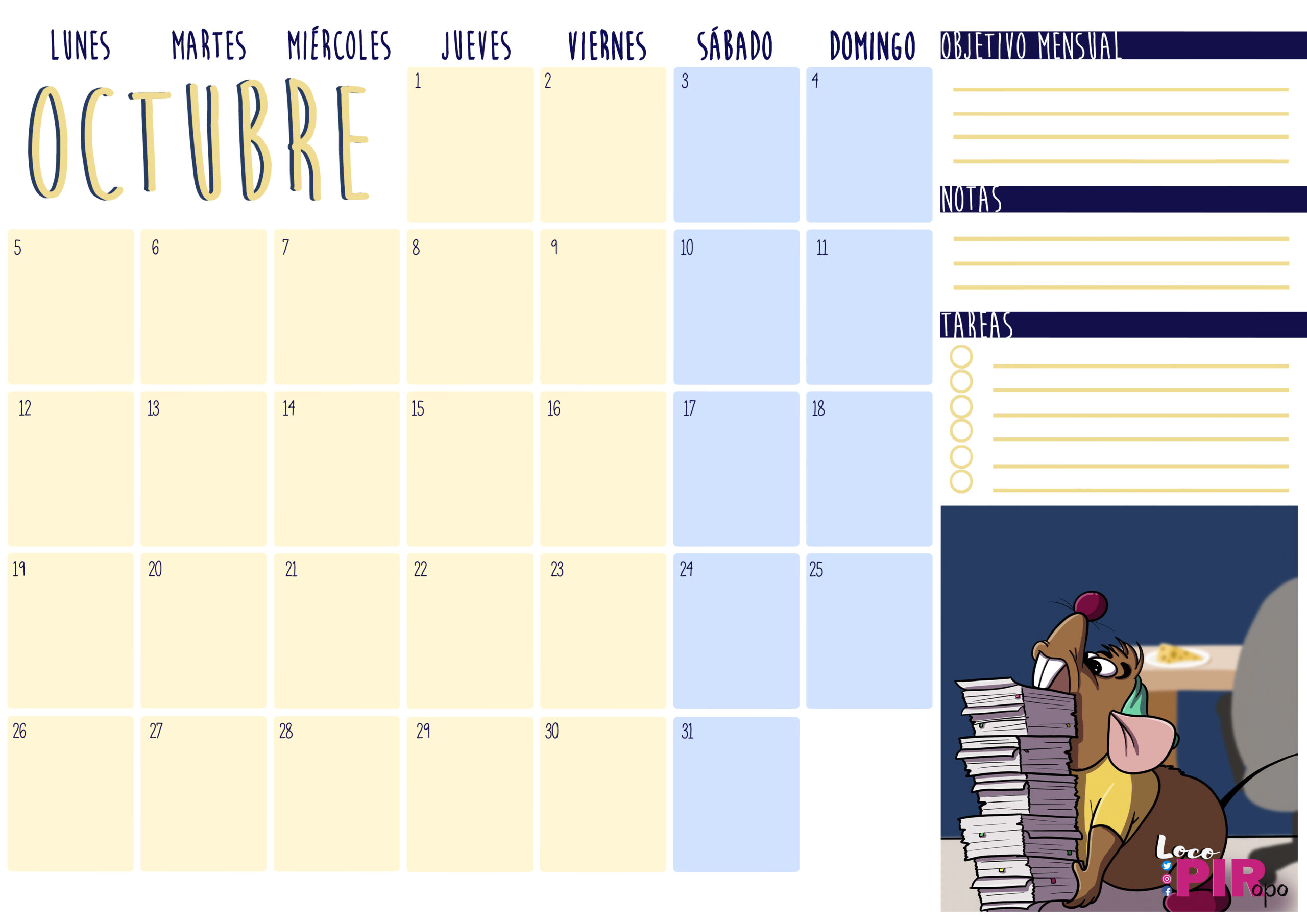 Sin más, os dejo con las dos versiones del planning de octubre para que podáis descargar la que más os guste: